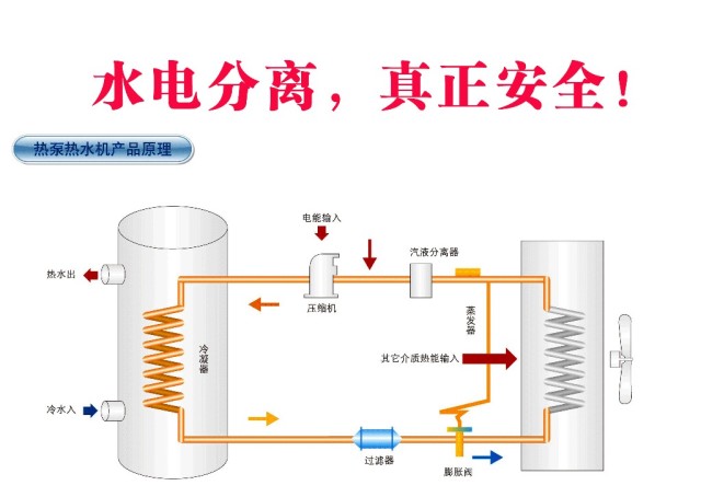 那么,區(qū)別于燃?xì)庀丛。諝饽軣崴髡嬲龅搅怂姺蛛x,安全性能更好,帶給消費(fèi)者更加舒適的使用體驗(yàn)。空氣能熱水器的發(fā)展至今已經(jīng)經(jīng)歷了數(shù)十年的歷史,只不過真正以獨(dú)立的熱水器形式進(jìn)入到大家的生活中則是近十多年的事情。早期的空調(diào)配置,在制冷系統(tǒng)中安裝上電磁四通閥門(又稱作換向閥),通過四通閥門切換方向,改變制冷劑的流動方向,空調(diào)就可以制熱??諝饽軣崴饕彩且源卧恚瑝嚎s機(jī)排除的高溫高壓蒸汽狀的制冷劑流向保溫水箱里的冷凝器,將熱量傳送給水箱中的自來水并且進(jìn)行加熱。熱泵熱水器通過吸收室外空氣中的熱量,電帶動壓縮機(jī)進(jìn)行換熱工作,比單獨(dú)的使用電加熱熱水器更加節(jié)能省電,節(jié)能可達(dá)到75%以上。
